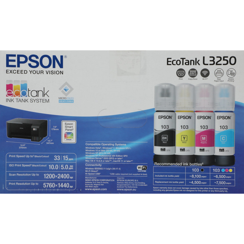 МФУ струйный Epson L3250 (C11CJ67508/503/523/418/519/412) A4 WiFi черный