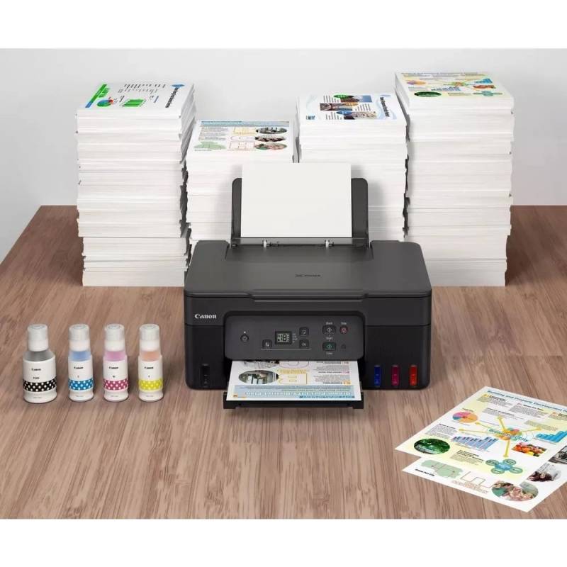 - МФУ PIXMA G2470 с пополняемыми емкостями для чернил, контейнеры с чернилами (4 цвета), Кабель питания, Руководства пользователя и другие документы