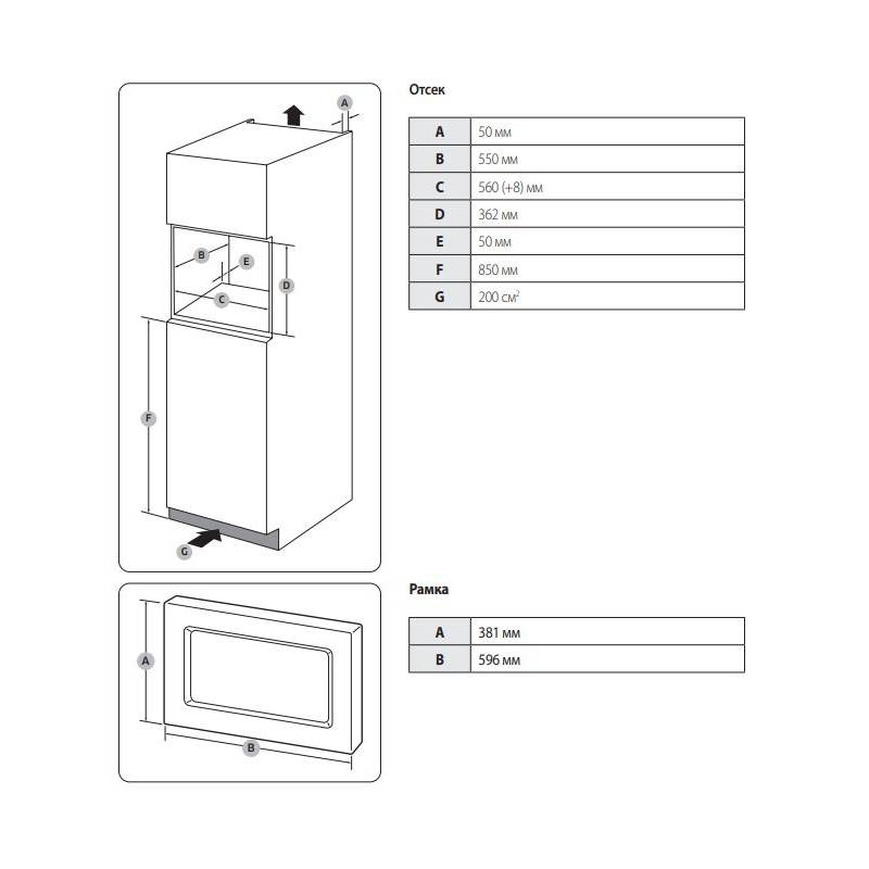 Микроволновая печь Samsung MS20A7013AB/BW 20л. 850Вт черный (встраиваемая)