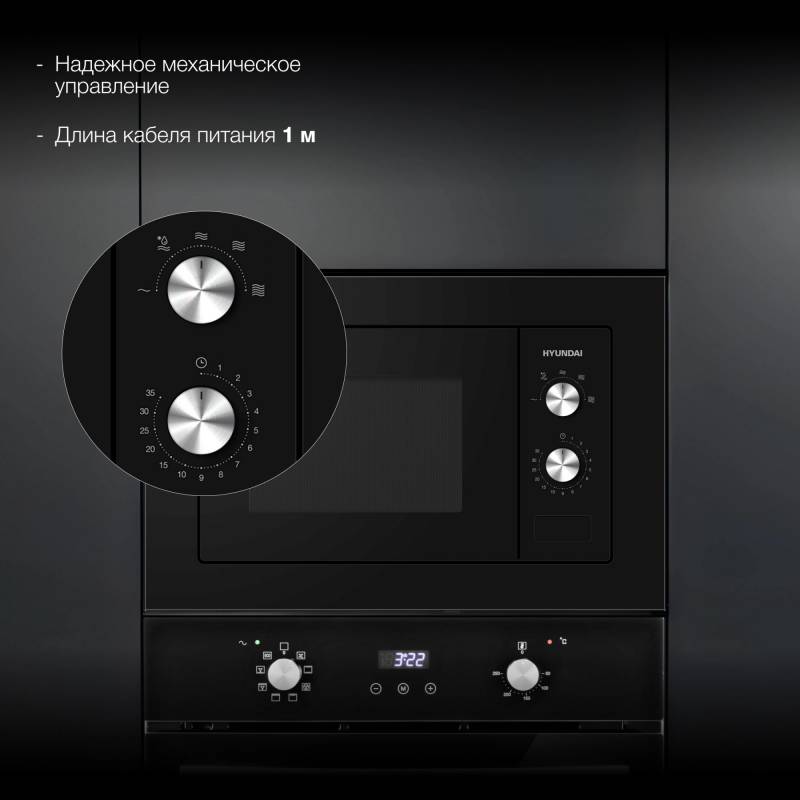 Микроволновая печь Hyundai HBW 2030S BG 20л. 800Вт черный (встраиваемая)