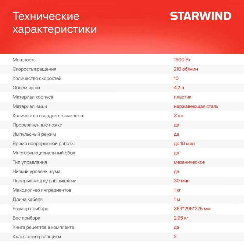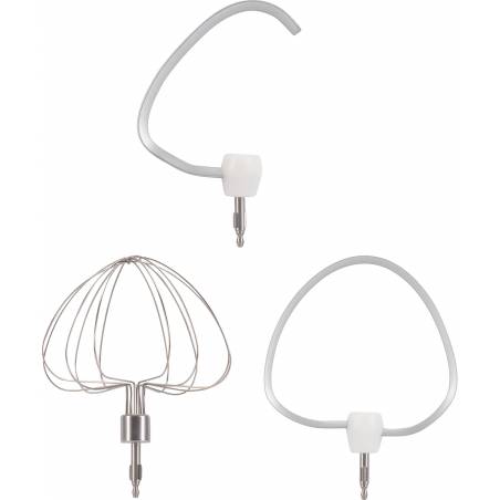 - Миксер; чаша; насадка-крюк; насадка-венчик; насадка-лопатка; инструкция с гарантийным талоном; книга рецептов; мультифункциональный защитный обод