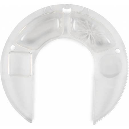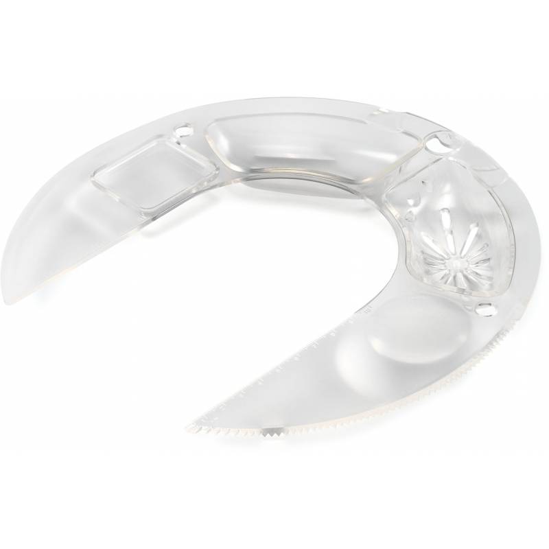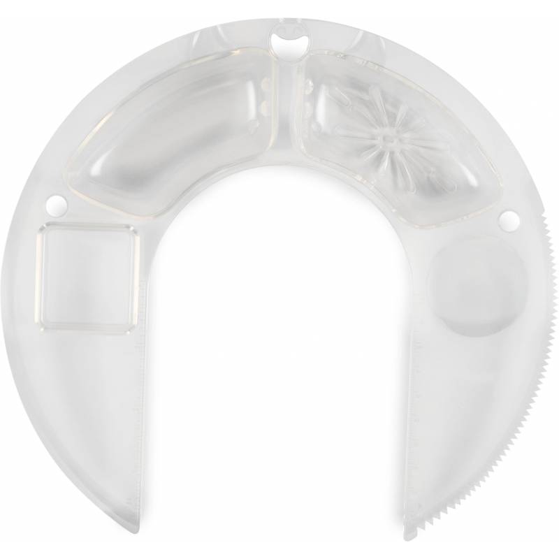 - Мультифункциональный обод: режущая поверхность + разделитель белка и желтка + ёмкость для добавления ингредиентов + отверстие для хранения насадок + подставка под фонарик + линейка