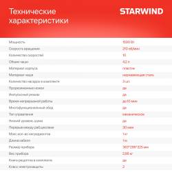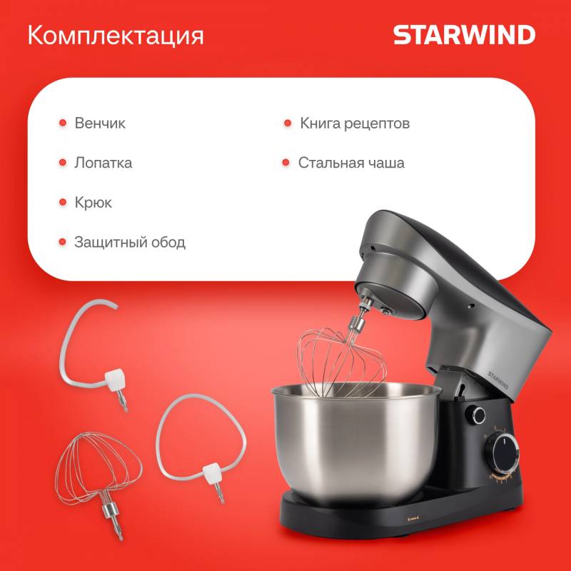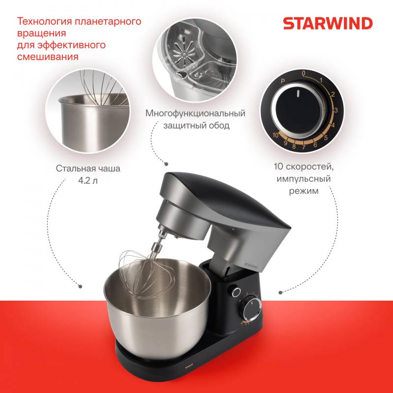Миксер планетарный Starwind SPM2251 1500Вт черный/серебристый