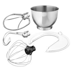 - Миксер; чаша; защитная крышка для чаши; насадка-венчик; насадка-лопатка; насадка-крюк; инструкция с гарантийным талоном; книга рецептов