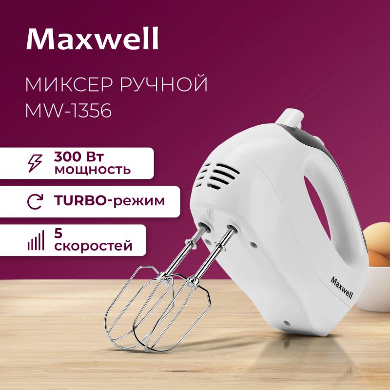 Миксер ручной Maxwell MW-1360 300Вт белый/голубой