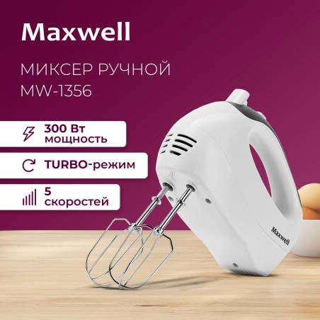 Миксер ручной Maxwell MW-1356 W 300Вт белый/серый