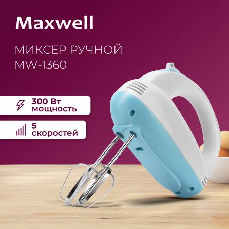 Миксер ручной Maxwell MW-1358 W 300Вт белый/оранжевый