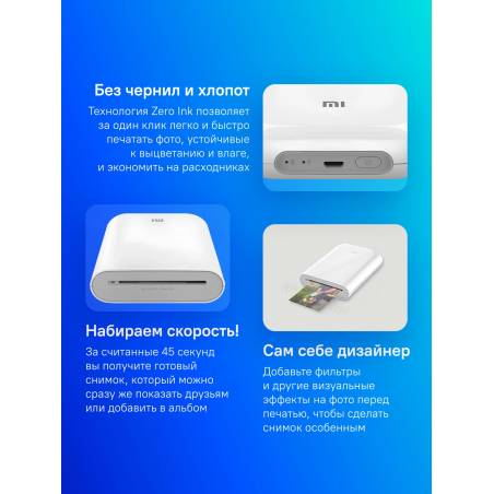 Принтер ZINK Xiaomi Mi TEJ4018GL белый