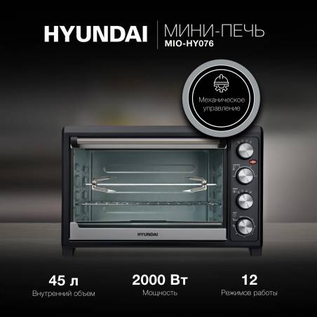 Мини-печь Hyundai MIO-HY076 45л. 2000Вт серебристый/черный