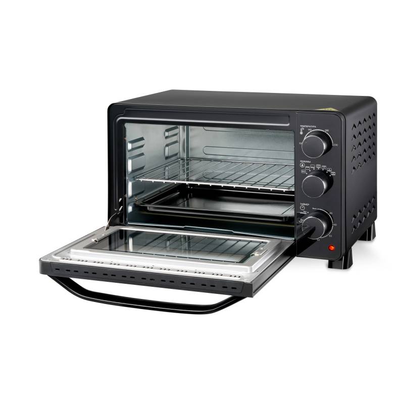 - двойное стекло, современный дизайн, ручка из аллюминия черного цвета, корпус не нагревается так, как у обычных моделей. размеры противня 336.2x260x20.5