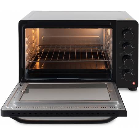 - Двойное стекло, современный дизайн, ручка из аллюминия, корпус не нагревается так, как у обычных моделей. размеры противня 391.8x307x20.5