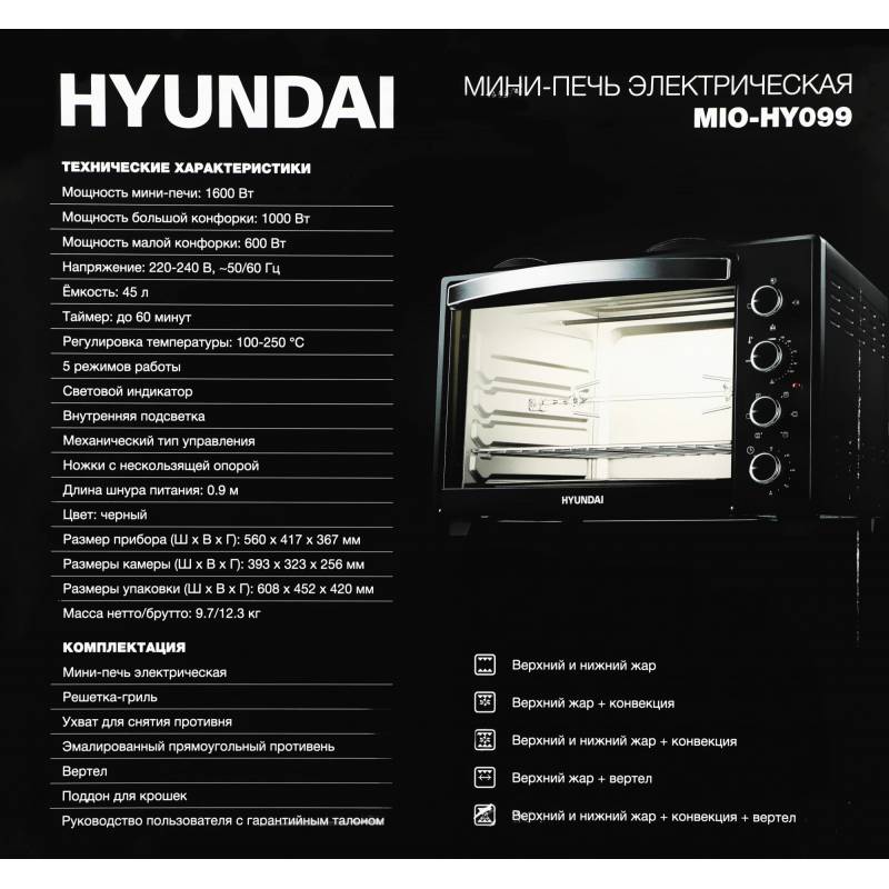 Мини-печь Hyundai MIO-HY099 45л. 1600Вт черный