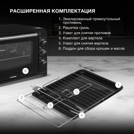 Мини-печь Hyundai MIO-HY106 60л. 2200Вт черный