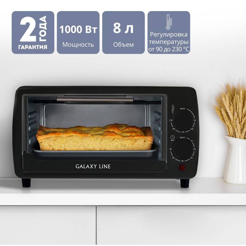 - Многофункциональная электрическая печь GALAXY LINE GL2625 заменит множество приборов на Вашей кухне. Компактный размер и объем 8 литров позволяют с легкостью разместить печь на небольшой кухне.