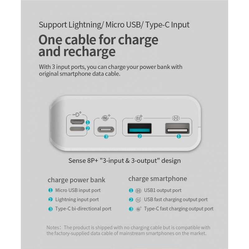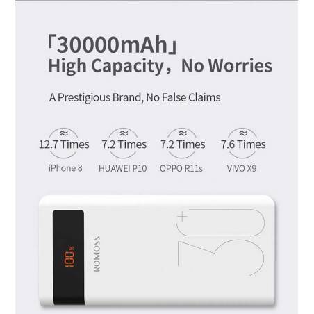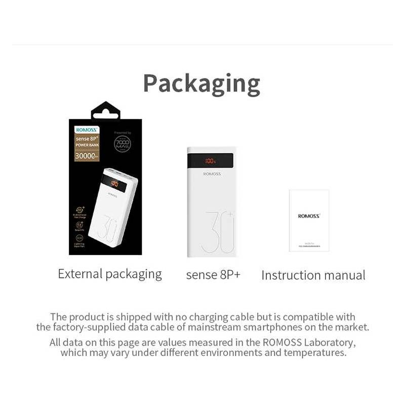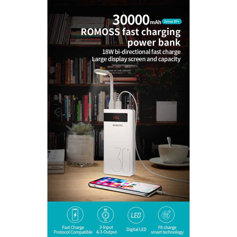 Мобильный аккумулятор Romoss Sense 8P+ 30000mAh QC3.0 18W 3A 2xUSB-A/USB-C белый (1539274)