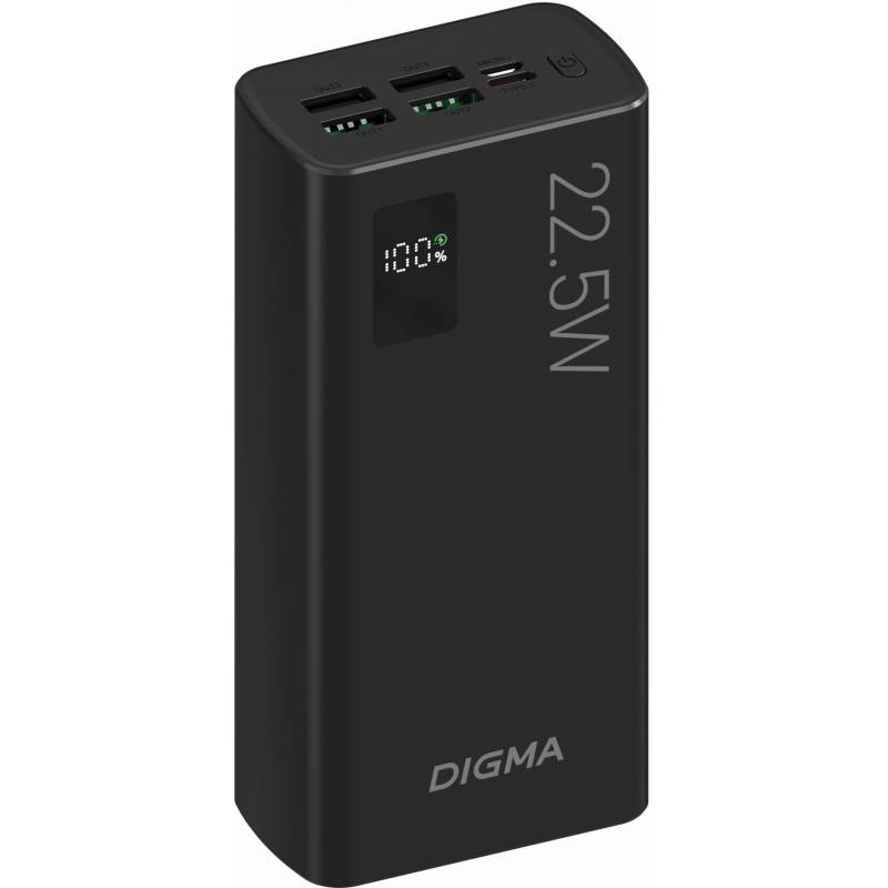 Мобильный аккумулятор Digma DGPF30A 30000mAh QC3.0/PD3.0 22.5W 3A 4xUSB-A/USB-C черный (DGPF30A22ABK)