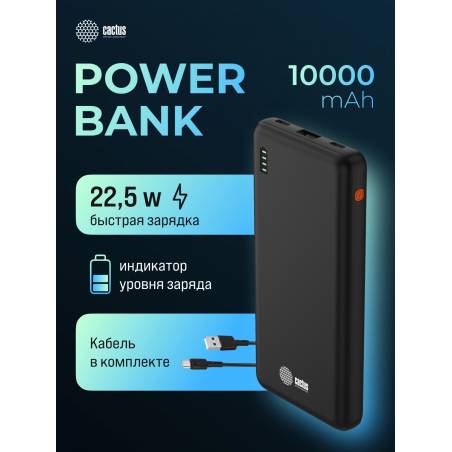 Мобильный аккумулятор Cactus CS-PBFSAA-10000 10000mAh 22.5W 4.5A USB-A/2xUSB-C черный