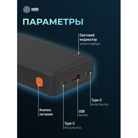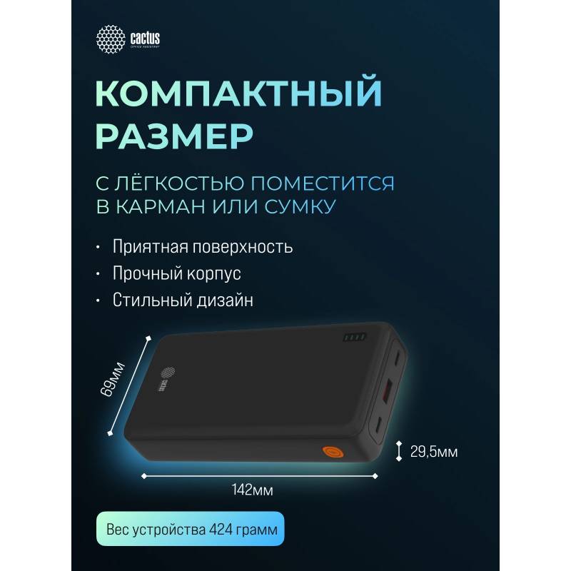 Мобильный аккумулятор Cactus CS-PBFSDA-20000 20000mAh 22.5W 4.5A USB-A/2xUSB-C черный