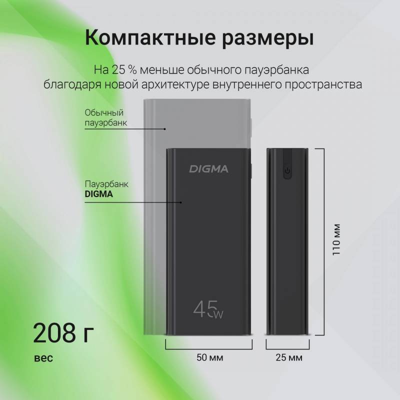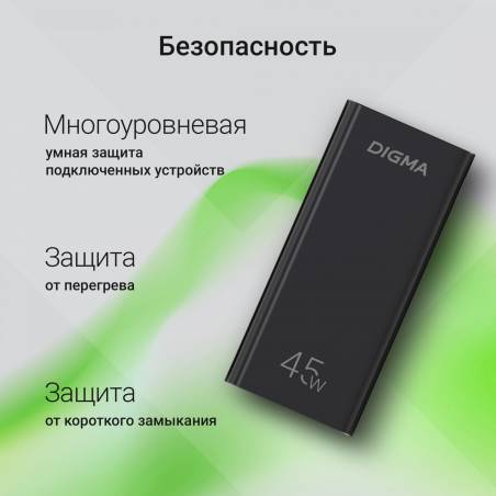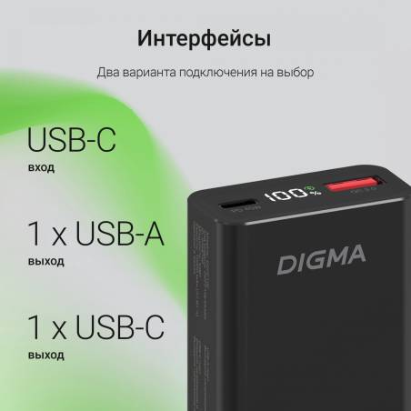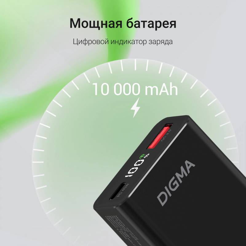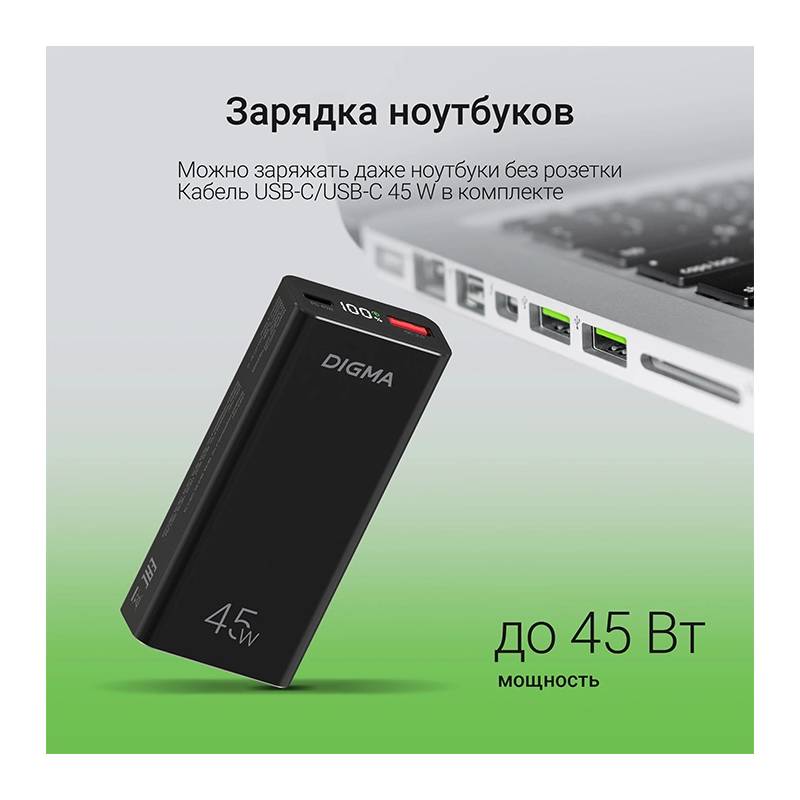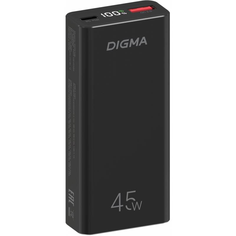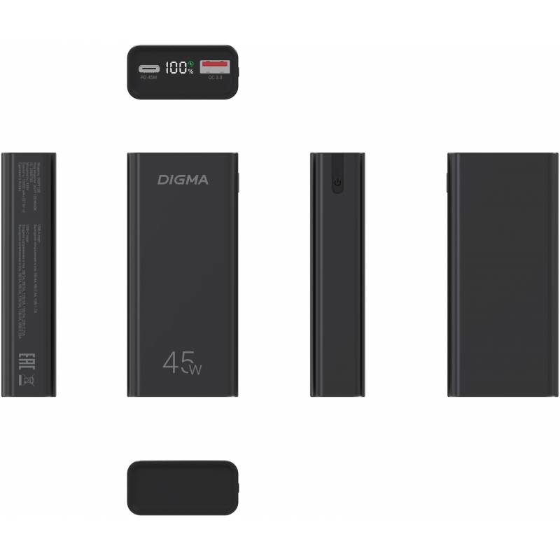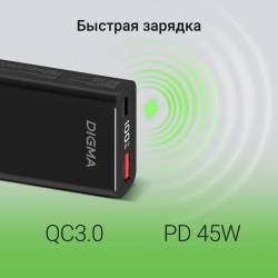 Мобильный аккумулятор Digma DGPF10E 10000mAh QC3.0/PD3.0 45W 4.5A USB-A/USB-C черный (DGPF10E45ABK)