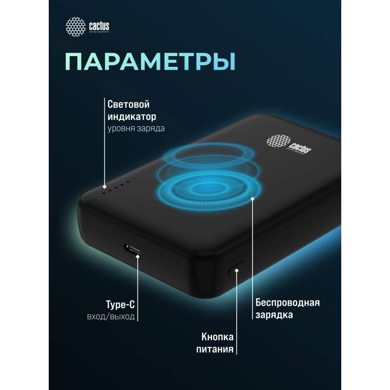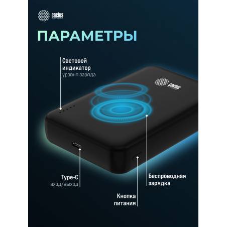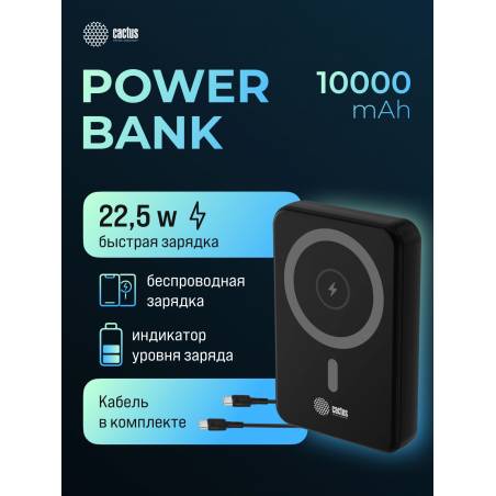 Мобильный аккумулятор Cactus CS-PBFSUA-10000 10000mAh 22.5W 4.5A USB-C беспров.зар. черный