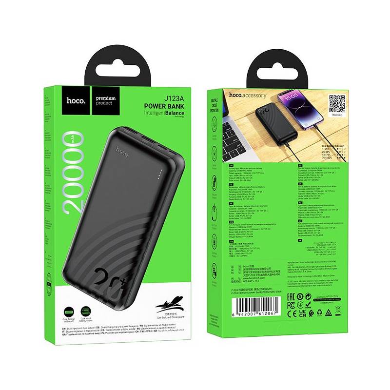 Мобильный аккумулятор Hoco J123A Element 20000mAh 2A 2xUSB-A черный