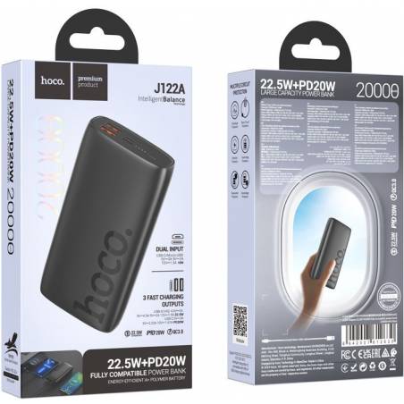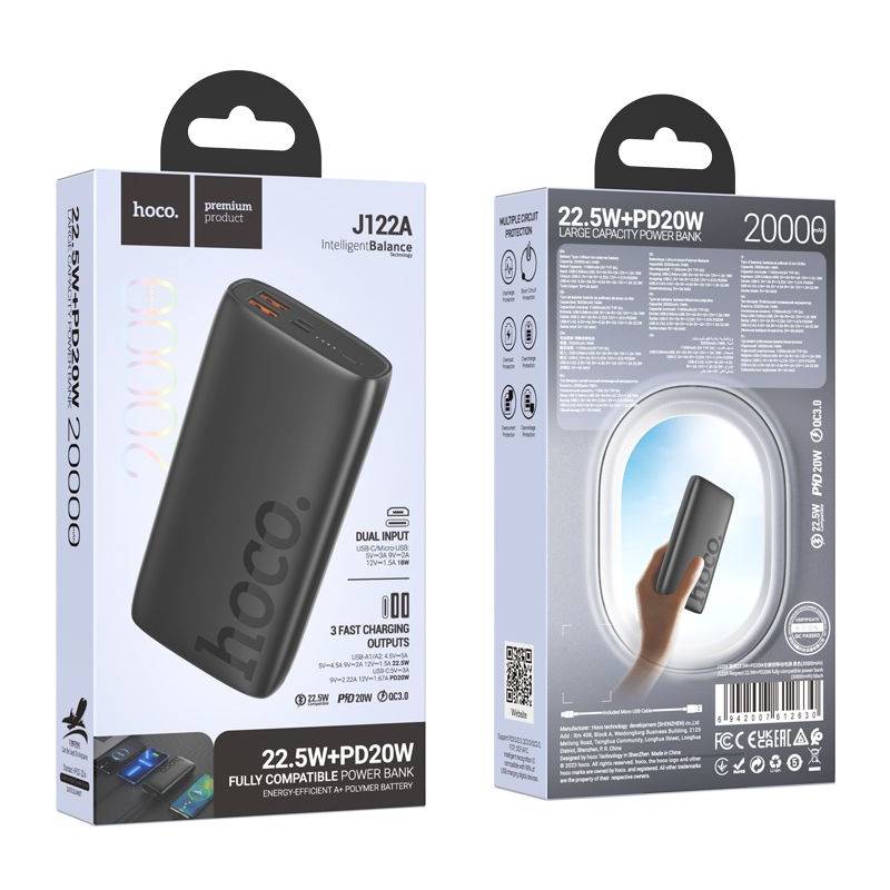 - Аккумулятор внешний резервный HOCO J122A Respect 22.5W+PD20W 20000mAh (чёрный)