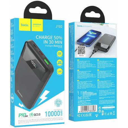 Мобильный аккумулятор Hoco J102 Cool figure 10000mAh QC3.0/PD3.0 20W 3A USB-A/USB-C черный