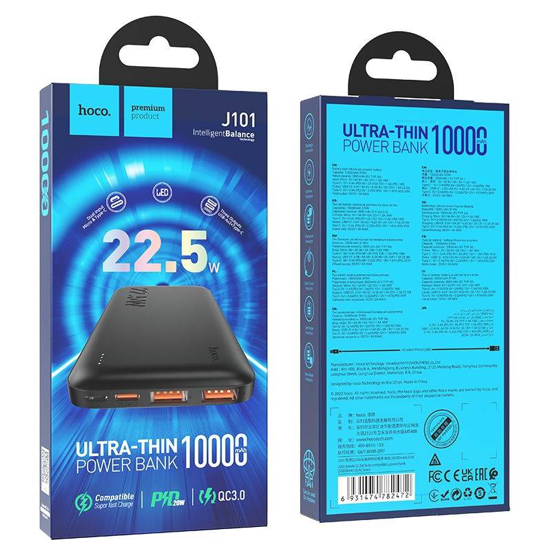 Мобильный аккумулятор Hoco J101 Astute 10000mAh QC3.0/PD3.0 22.5W 5A 2xUSB-A/USB-C черный