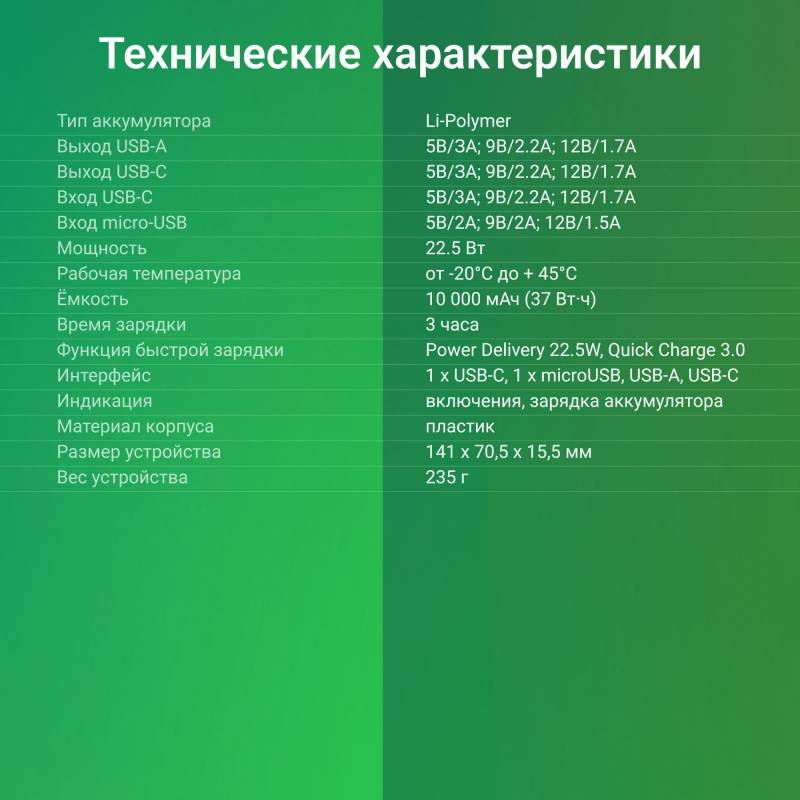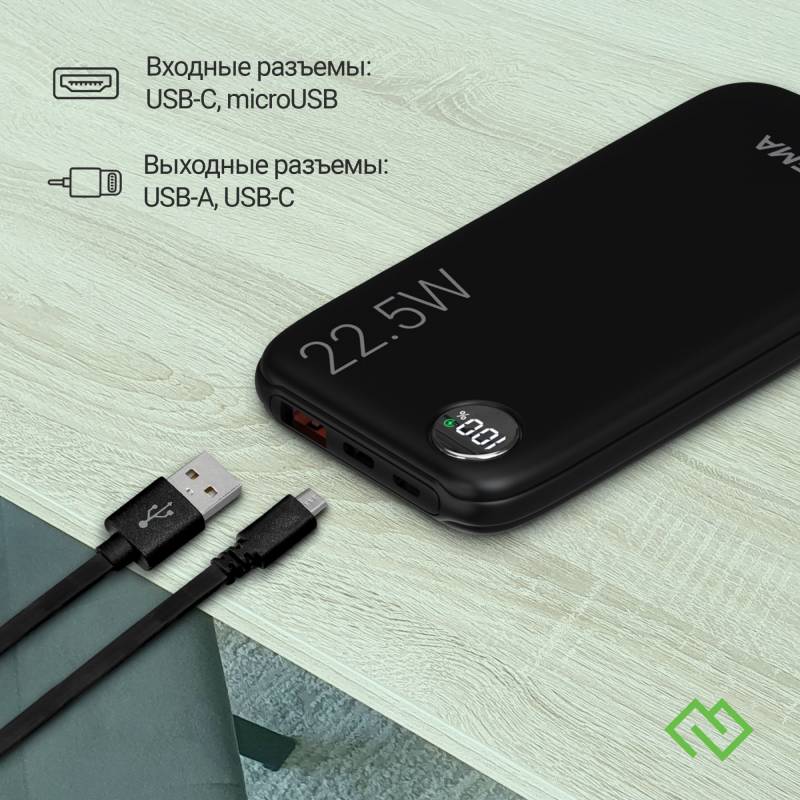 Мобильный аккумулятор Digma DGPF10B 10000mAh QC3.0/PD3.0 22.5W 3A USB-A/USB-C черный (DGPF10B22PBK)