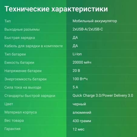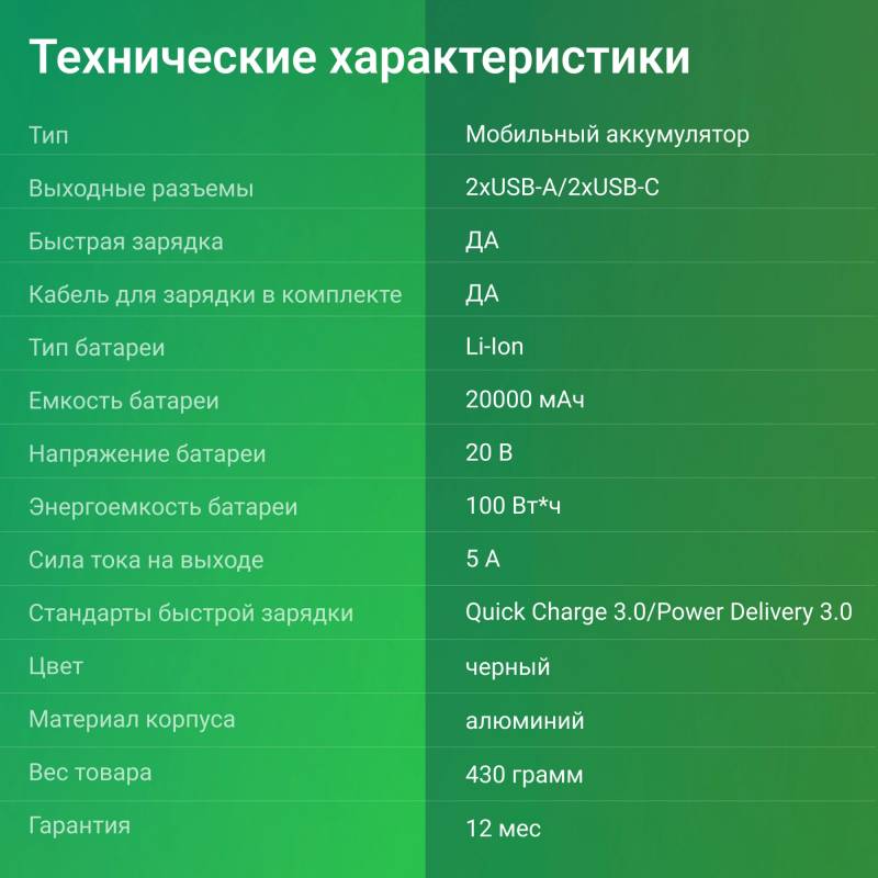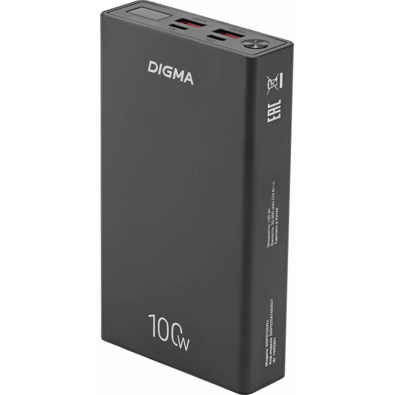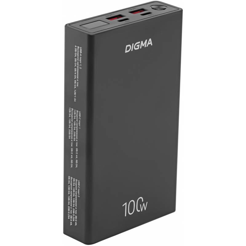 Мобильный аккумулятор Digma DGPD100WA 20000mAh QC3.0/PD3.0 100W 5A 2xUSB-A/2xUSB-C черный (DGPD20A100ABK)