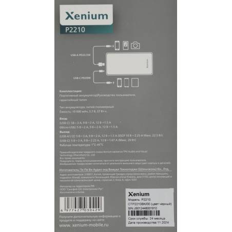 Мобильный аккумулятор Xenium CTP2210 10000mAh 22.5W 5A 2xUSB-A/USB-C серый (CTP2210BK/00)