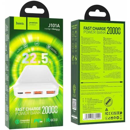Мобильный аккумулятор Hoco J101A Astute 20000mAh QC3.0/PD2.0 22.5W 3A 2xUSB-A/USB-C белый (82502)
