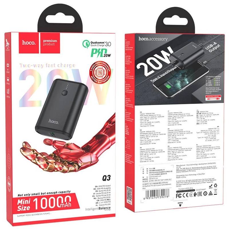 Мобильный аккумулятор Hoco Q3 Mayflower 10000mAh QC3.0/PD2.0 18W 3A USB-A черный (PD20W+QC3.0 42896)