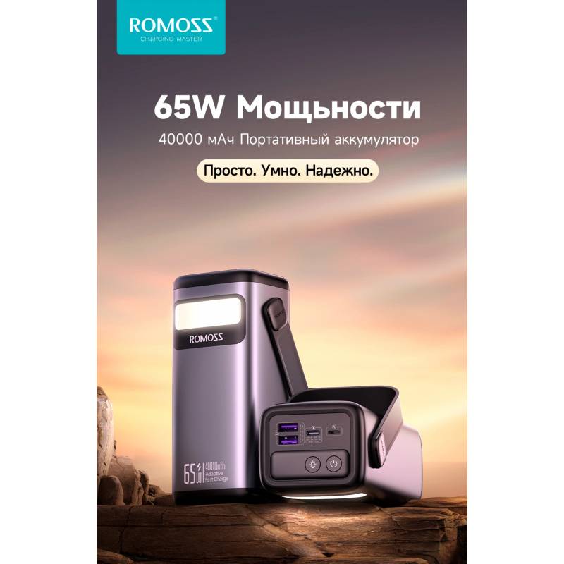 Мобильный аккумулятор Romoss PMT40 40000mAh 65W 5A 2xUSB-A/USB-C черный (1746420)