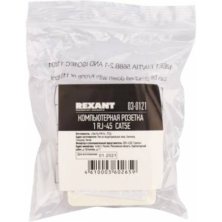Розетка Rexant 03-0121 комп.RJ45 1 кат.5E UTP бел.