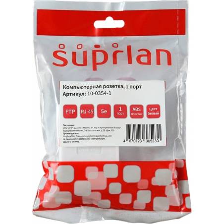 Розетка Suprlan 10-0354-1 наклад.RJ45 1 кат.5E FTP бел.