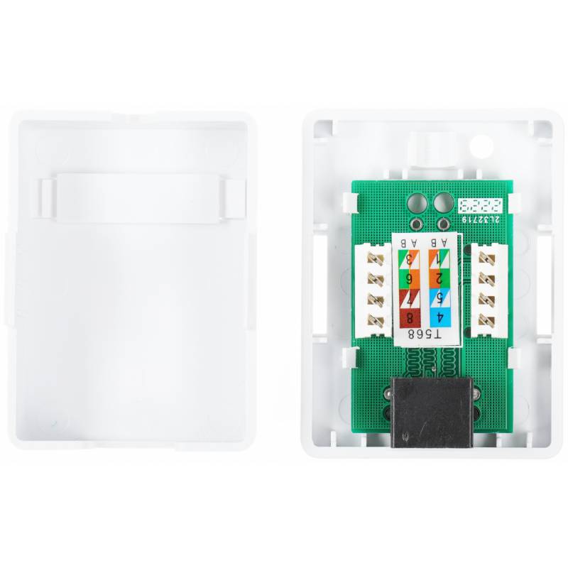 - двухпортовые неэкранированные (UTP) телекоммуникационные розетки с портами RJ-45, предназначены для монтажа на стену. Порты розетки смонтированы на одной печатной плате вместе с разъемами IDC 110-го типа.Розетки с портами RJ-45 соответствуют требованиям к