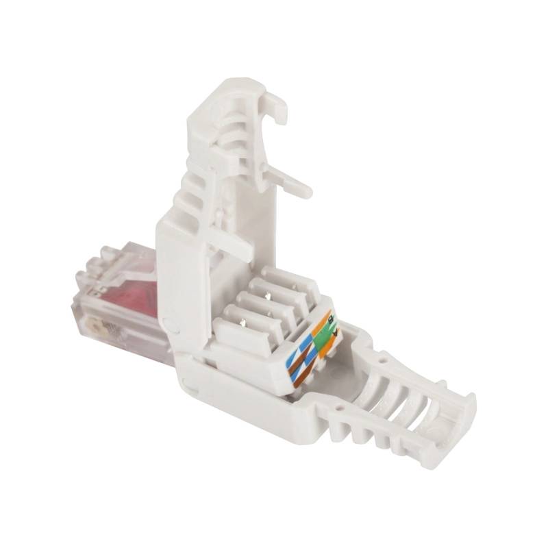- Коннектор RJ-45 предназначен для оконцевания неэкранированного кабеля витая пара в полевых условиях. Разъем может быть полезным при необходимости подключения оборудования напрямую, без установки розетки RJ-45.