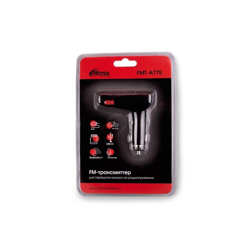 Автомобильный FM-модулятор Ritmix FMT-A775 черный MicroSD BT USB (15119075)