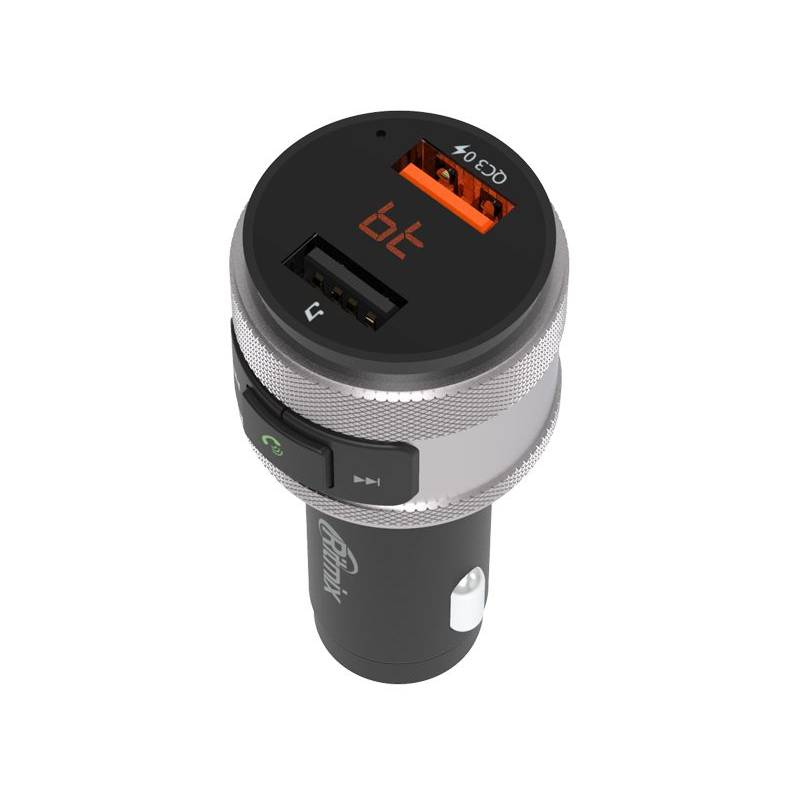 - FM-трансмиттер c функцией Bluetooth «хэндс-фри» и USB-портами зарядки (Quick Charge 3.0 + USB 5В/1А), предназначен для воспроизведения звонков и аудиофайлов с вашего телефона или подключенного USB-накопителя через динамики автомобильной аудиосистемы