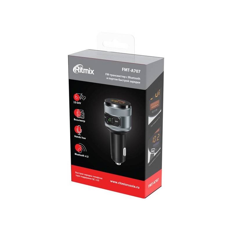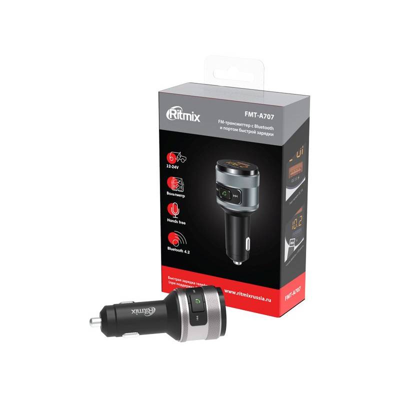 Автомобильный FM-модулятор Ritmix FMT-A707 черный MicroSD BT USB (80000131)
