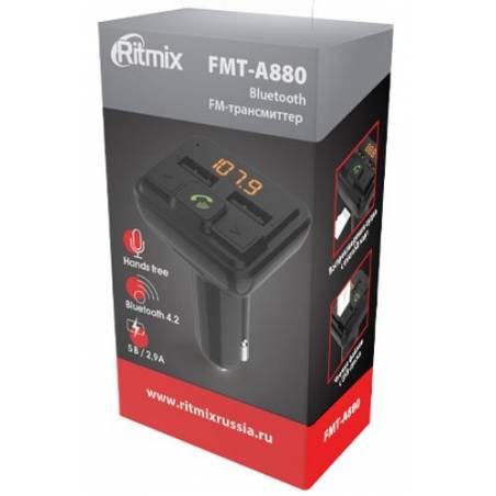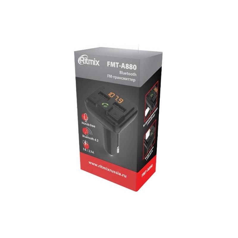Автомобильный FM-модулятор Ritmix FMT-A880 черный MicroSD BT USB (80001662)