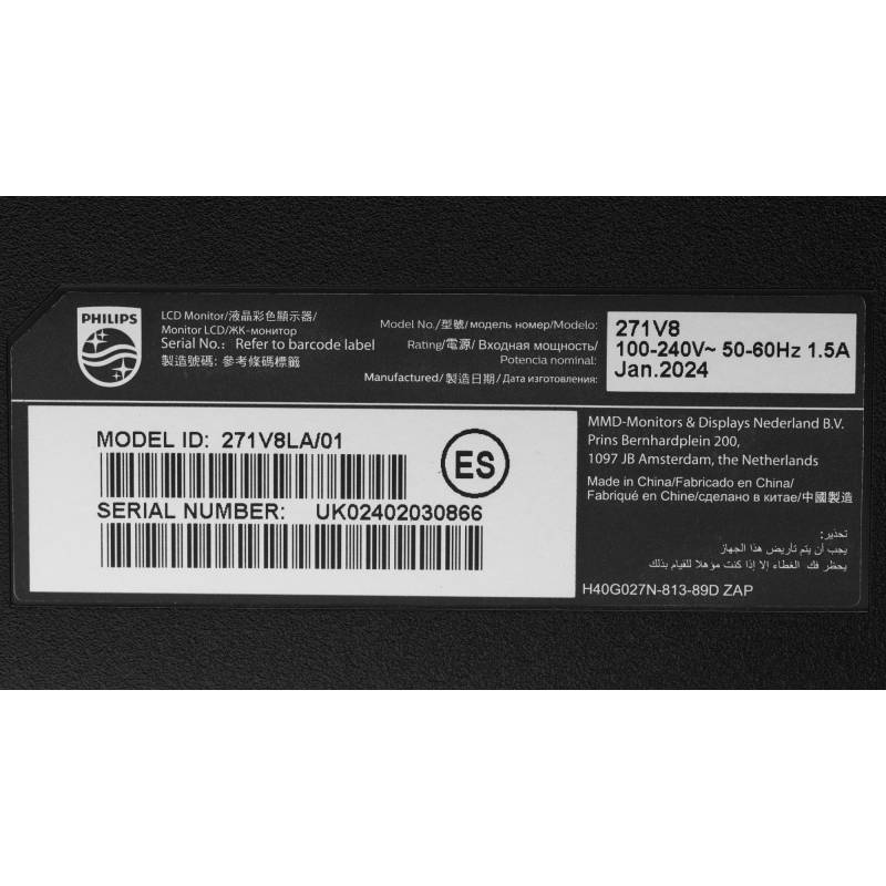 Монитор Philips 27" 271V8LA черный VA LED 16:9 HDMI M/M матовая 250cd 178гр/178гр 1920x1080 75Hz VGA FHD 3.96кг