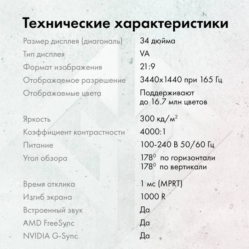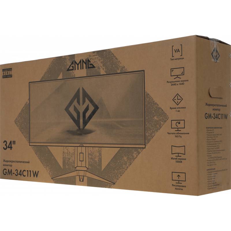 Монитор GMNG 34" Gaming GM-34C11W черный VA LED 2ms 21:9 HDMI M/M матовая HAS Piv 4000:1 300cd 178гр/178гр 3440x1440 165Hz G-Syn