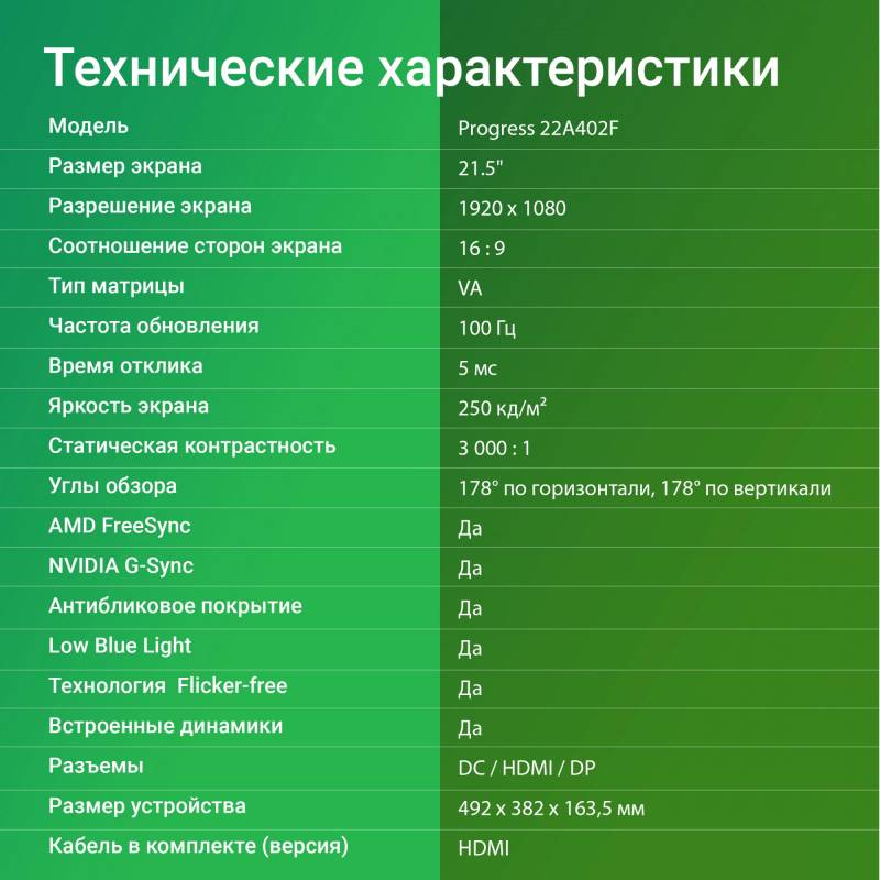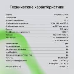 Монитор Digma 21.5" Progress 22A402F черный VA LED 5ms 16:9 HDMI M/M матовая 250cd 16гр/178гр 1920x1080 100Hz G-Sync DP FHD 2.2к