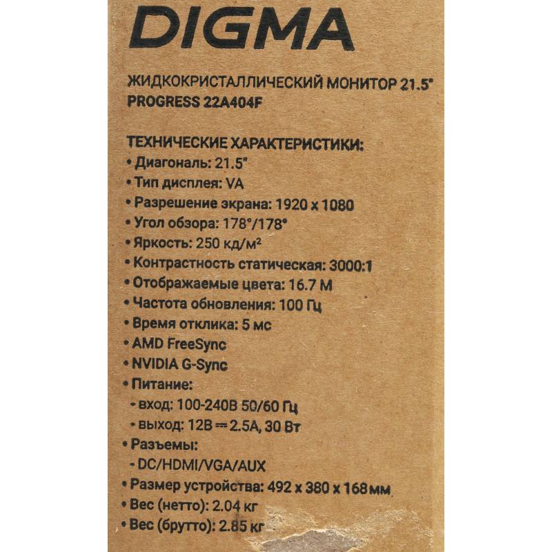 Монитор Digma 21.5" Progress 22A404F черный VA LED 5ms 16:9 HDMI M/M матовая 250cd 178гр/178гр 1920x1080 100Hz VGA FHD 2.2кг