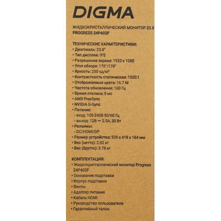 Монитор Digma 23.8" Progress 24P402F черный IPS LED 5ms 16:9 HDMI M/M матовая 250cd 178гр/178гр 1920x1080 100Hz G-Sync DP FHD 3.
