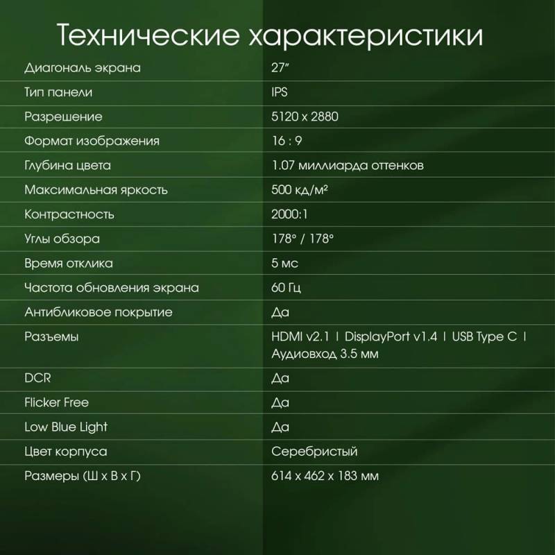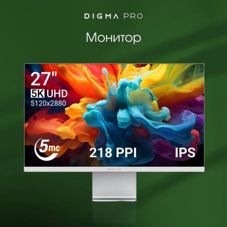 Монитор Digma Pro 27" Art M серебристый IPS LED 5ms 16:9 HDMI M/M матовая 500cd 178гр/178гр 5120x2880 60Hz FreeSync DP 5K USB 5.
