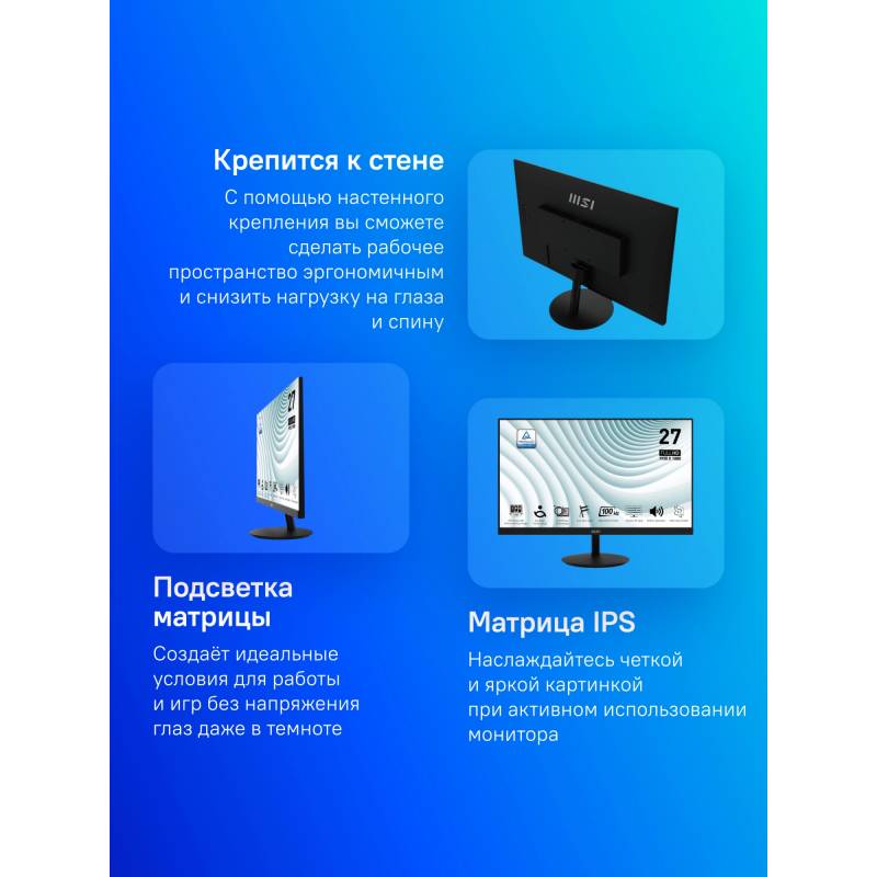 Монитор MSI 27" Pro MP271A черный IPS LED 1ms 16:9 HDMI M/M матовая 300cd 178гр/178гр 1920x1080 100Hz VGA DP FHD 3.9кг