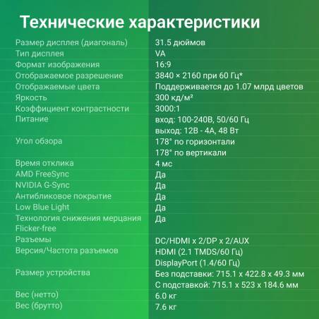 Монитор Digma 31.5" Progress 32A501U черный VA 4ms 16:9 HDMI матовая 300cd 178гр/178гр 3840x2160 60Hz G-Sync DP 4K 6кг